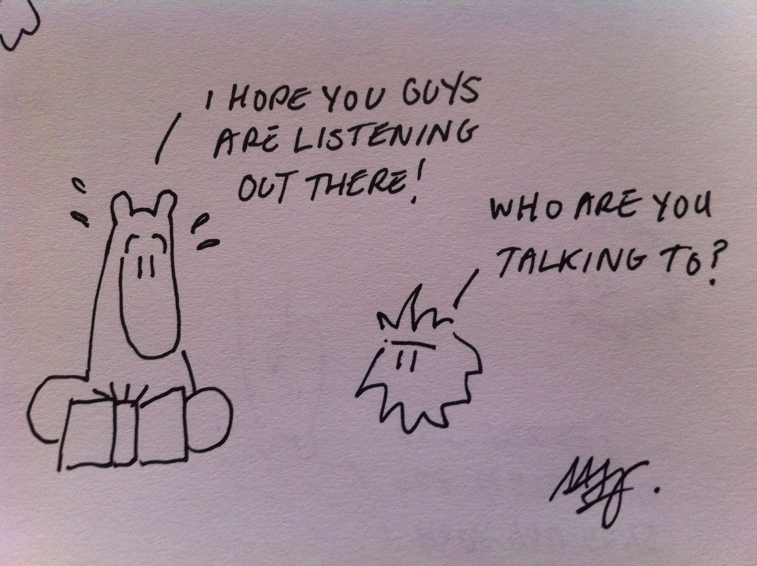 Woah!! Did you catch that weaselly move in Example 2? Rob, henceforth “Conversation Weasel”, has sneakily moved the attention away from James and placed it squarely on himself, in a verbal strategy Derber calls “shift-response” (as opposed to the polite and engaging “support-response” demonstrated in Example 1). The post goes on to elaborate on a number of fascinating ways Conversation Weasel can leave the listener high and dry while running away madly with the conversation football.