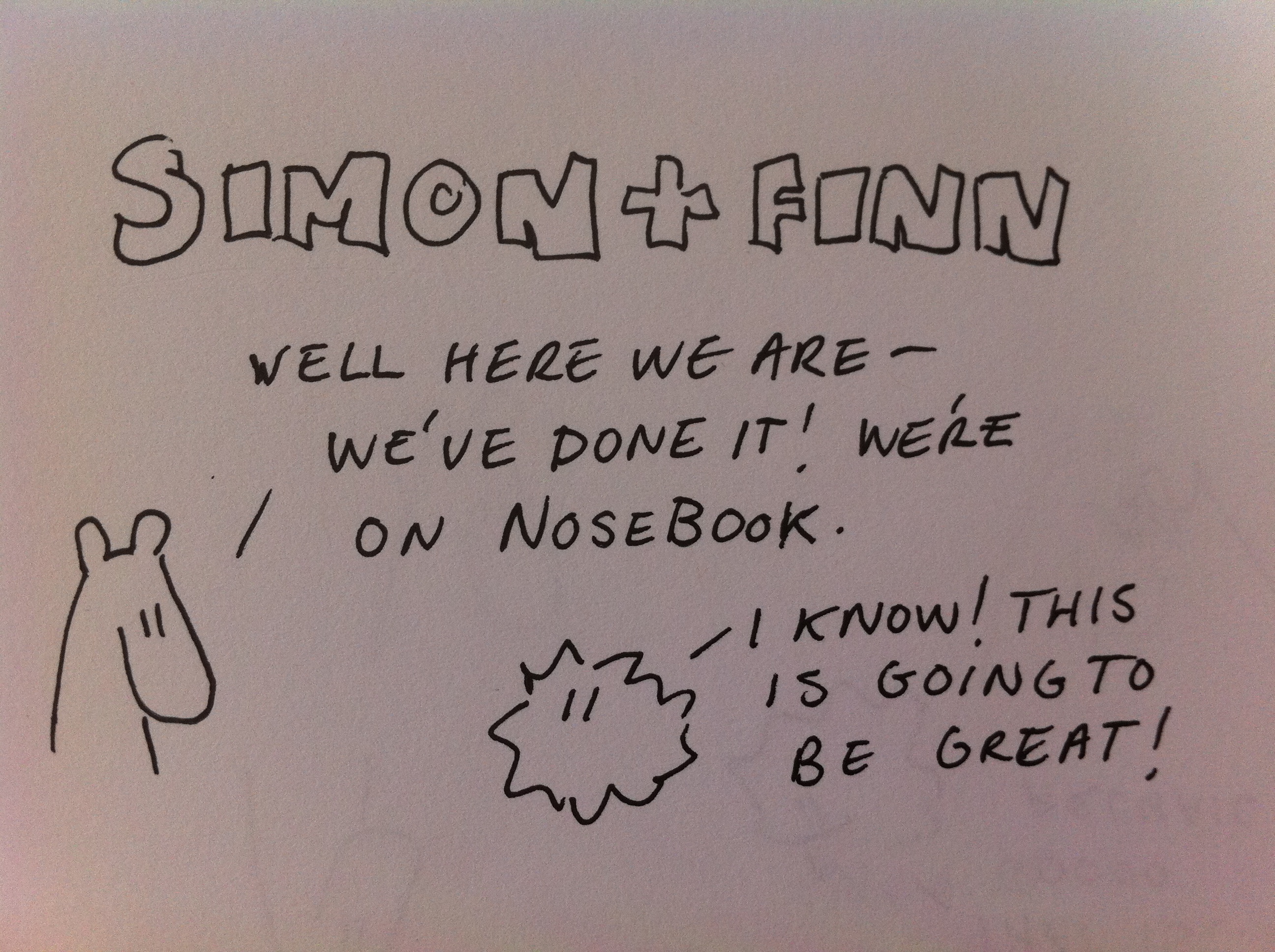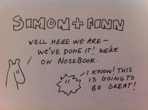 Simon and Finn visit Face..er I mean, NoseBook Posted on March 13, 2012 by simonandfinn Share this: Click to share on Facebook (Opens in new window) Facebook Click to email a link to a friend (Opens in new window) Email Click to share on X (Opens in new window) X Click to share on Pinterest (Opens in new window) Pinterest More Click to share on LinkedIn (Opens in new window) LinkedIn Click to share on Tumblr (Opens in new window) Tumblr Click to share on Reddit (Opens in new window) Reddit Click to print (Opens in new window) Print Like Loading... Related