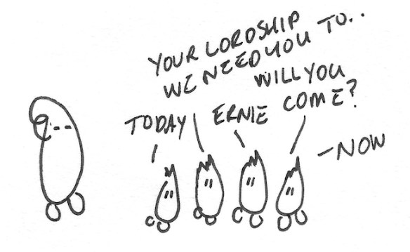 At that moment, Ernie resolved: no more.Ā  And with that, his spirit rejoiced (and his hair uncurled).