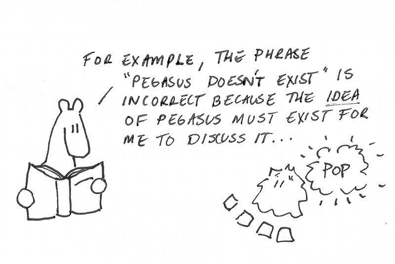 P.S. This ontological ride has some origins in the Sophist, where Plato introduces the idea that what “is not” – in some sense – still “is”. To wit, Quine nicknames this ontological puzzle Plato’s Beard, seeing as it’s been dulling Occam’s razor for centuries.