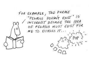 Quine happily explores the particulars of this ontological – or perhaps more appropriately semantic – puzzle by assuming various approaches to correctly expressing Pegasus’s material quandary. For example, instead of saying Pegasus doesn’t exist, we could instead say: “Pegasus does not have the specialized attribute of actuality”. Or, more succinctly, “Pegasus is an unactualized possible”. And by so doing, we multiply the number of potential Pegasi available to us all in the name of philosophical precision. This “slum of the possibles” as Quine so puts it, is quite the breeding ground for disorderly elements, as it means a litany of existence-caveats would litter every avenue of discourse.