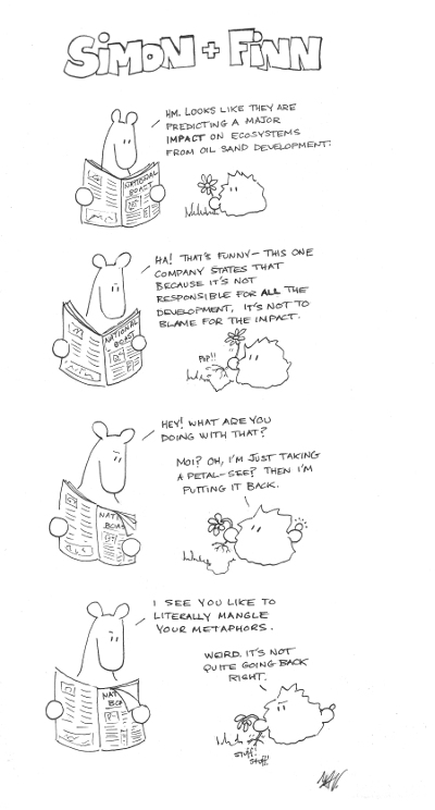 Some of you have seen this commentary on oil sands cartoon before.. The drawing was recently published in the The Potent.ca, which is a new entertainment website with an environmental twist.