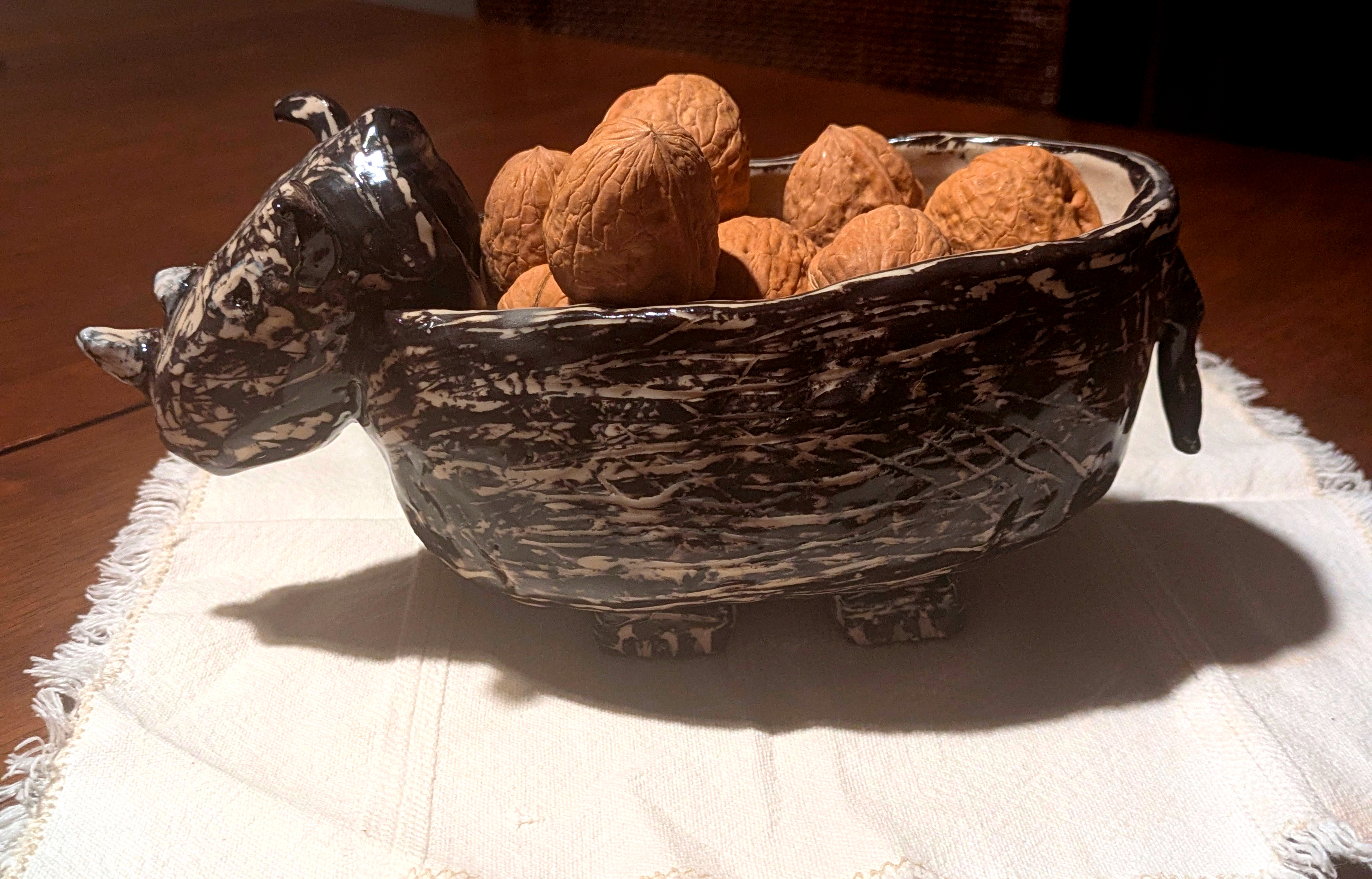 Rhino Tuesday Posted on November 18, 2025 by simonandfinn Reply This little guy started off life as a bowl.. and slowly transformed into something with legs and ears. And eventually with walnuts too. Share this: Click to share on Facebook (Opens in new window) Facebook Click to email a link to a friend (Opens in new window) Email Click to share on X (Opens in new window) X Click to share on Pinterest (Opens in new window) Pinterest More Click to share on LinkedIn (Opens in new window) LinkedIn Click to share on Tumblr (Opens in new window) Tumblr Click to share on Reddit (Opens in new window) Reddit Click to print (Opens in new window) Print Like Loading...