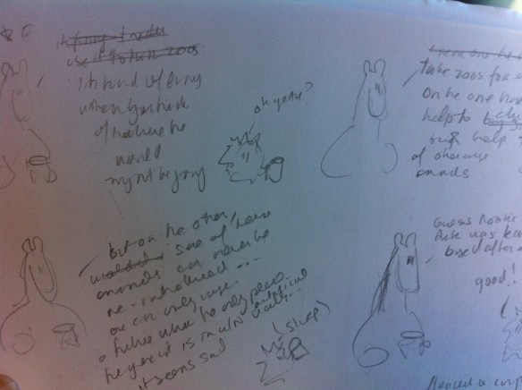 So a few people have asked about how the creative process works.  Here’s a brief example.  Basically an idea pops up – related to science, or quirky society things, or rants of some kind – and then Simon & Finn start chatting about it…