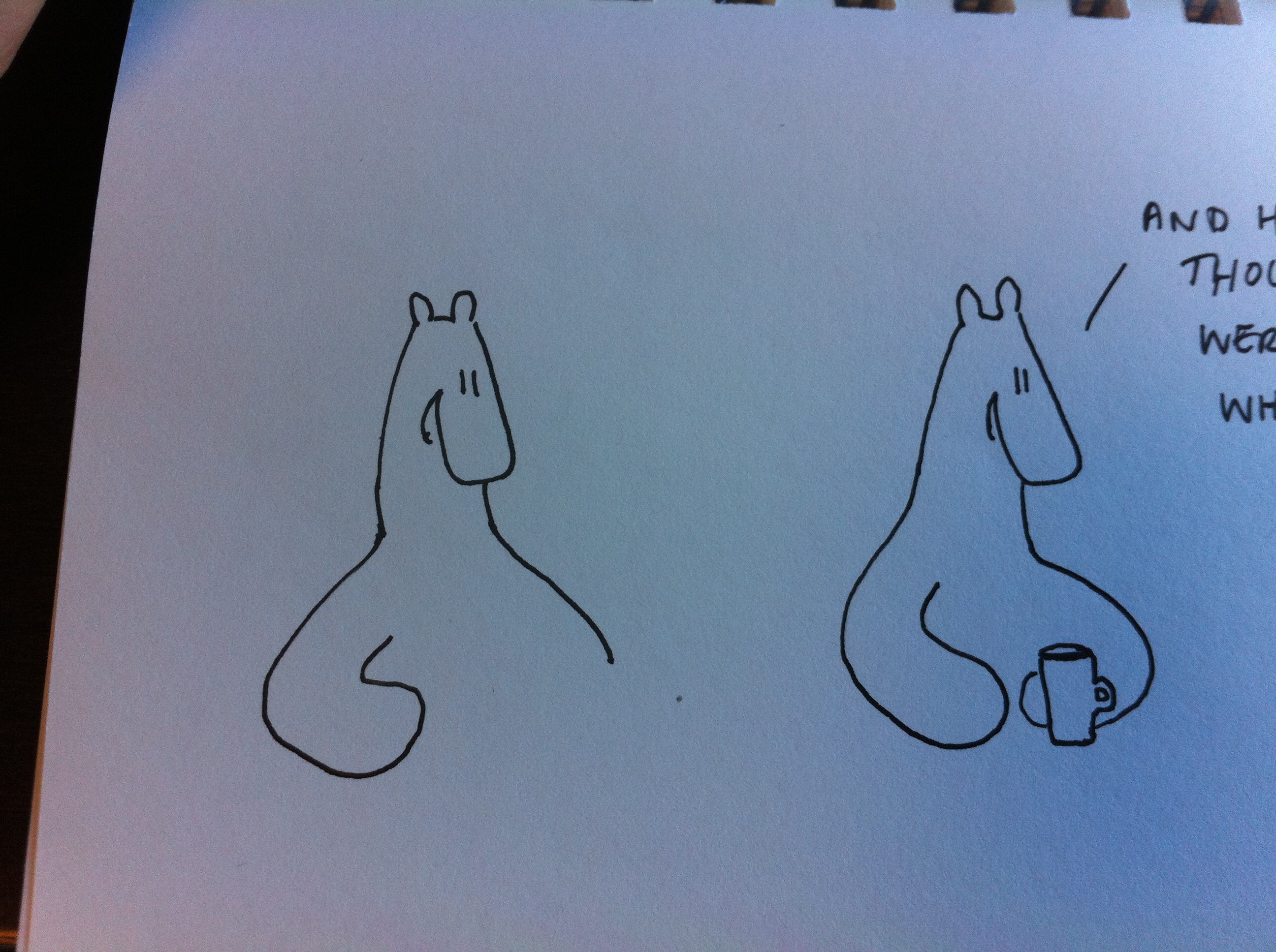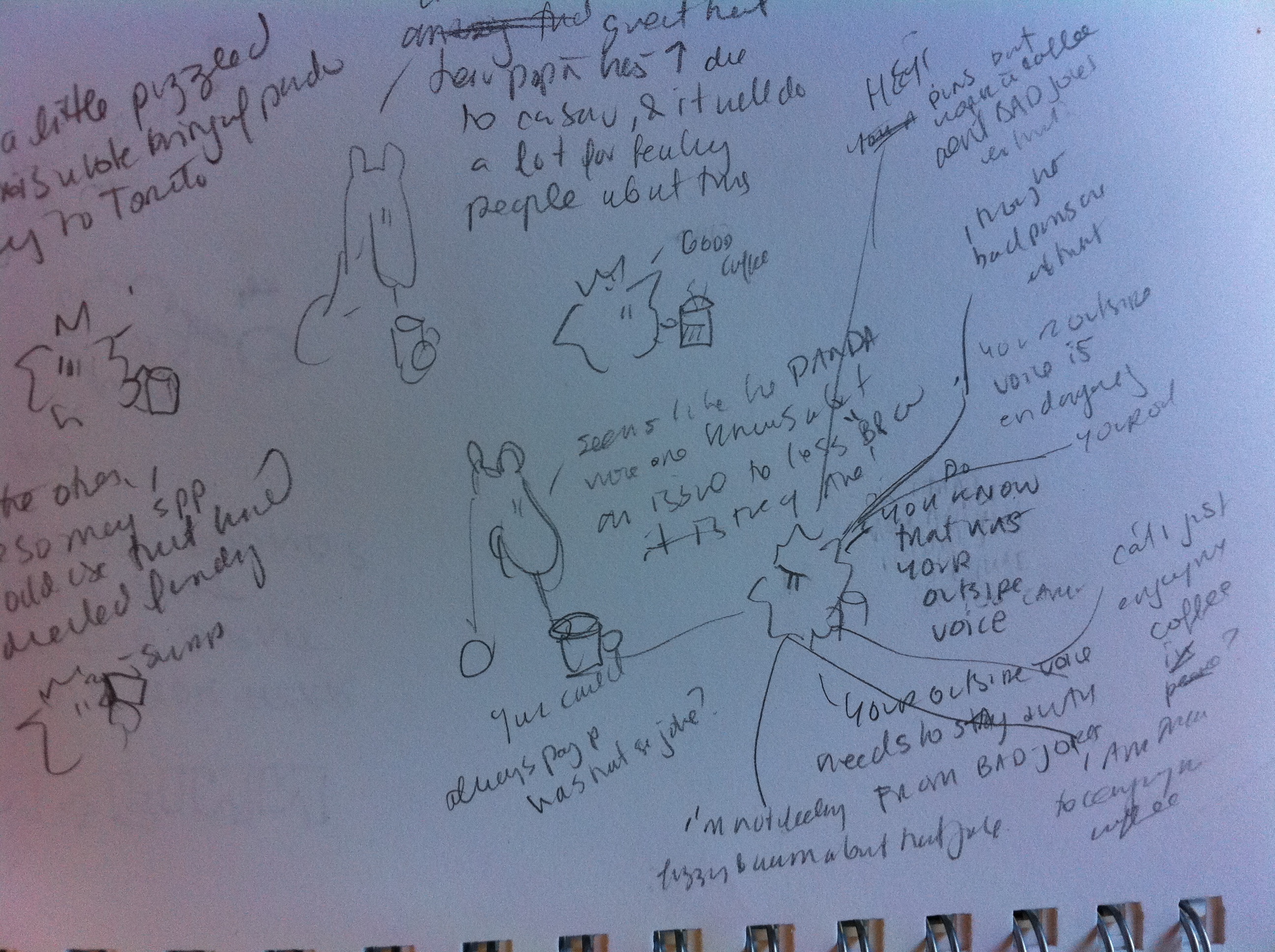 On a totally related note, have you ever tried drawing a coffee cup?  It’s astounding how difficult they are to draw.  You can see a few odd specimens below that look like some kind of chia pet/coffee hybrid.