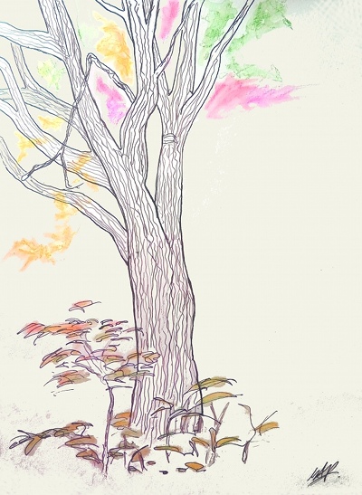 In Le Visiteur, Yelin explained how she uses drawing as a means to uncover her characters and eventually, the plot. For example, she described how she would draw an interesting space, and old house for example, and as she kept drawing perhaps a laneway would appear, lined with trees. And in a drawing after that, perhaps a small figure would appear.
