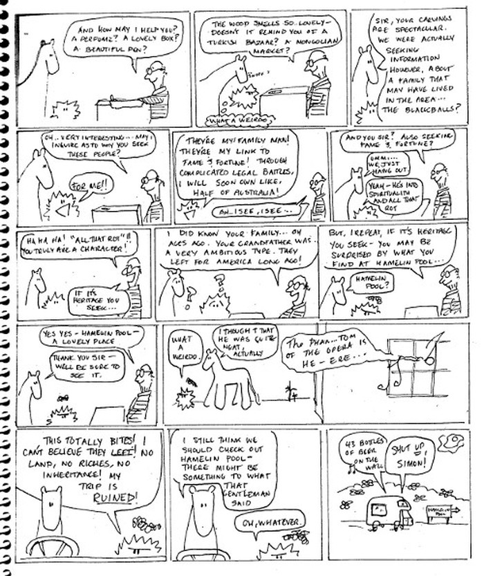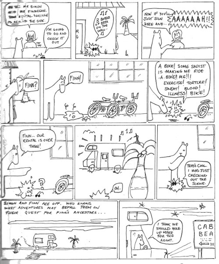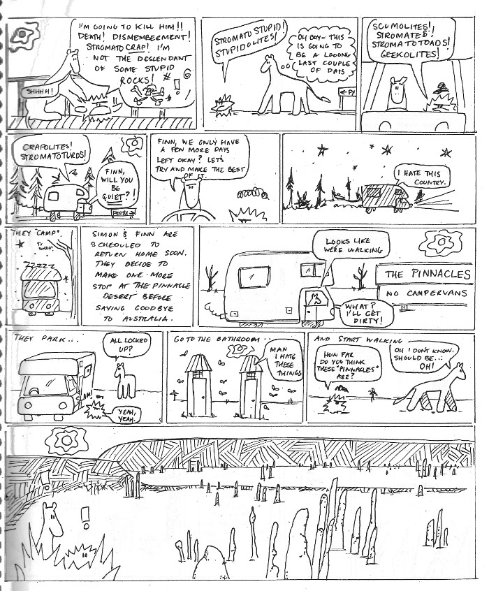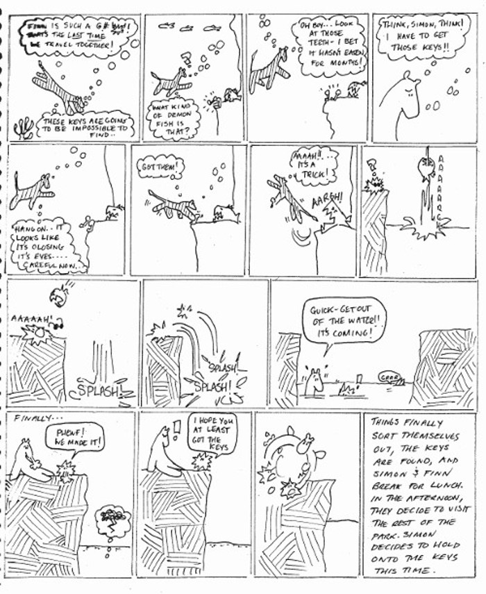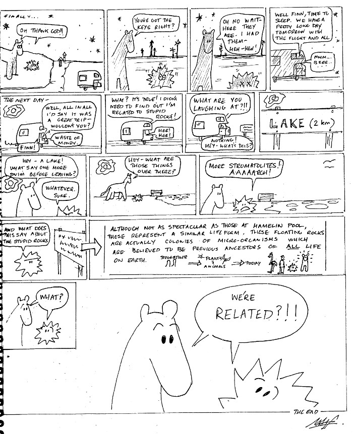 Good ending! I guess Finn was really happy to learn he is related to Simon, as far back as the ameba 🙂 Also quite funny that the animals in the Finger Reef park seem perplexed by the sight of Simon & Finn, but all the humans in the story are all good interacting with them in English!! 🙂 Makes me long for humans to be more indiscriminating like that in my world!