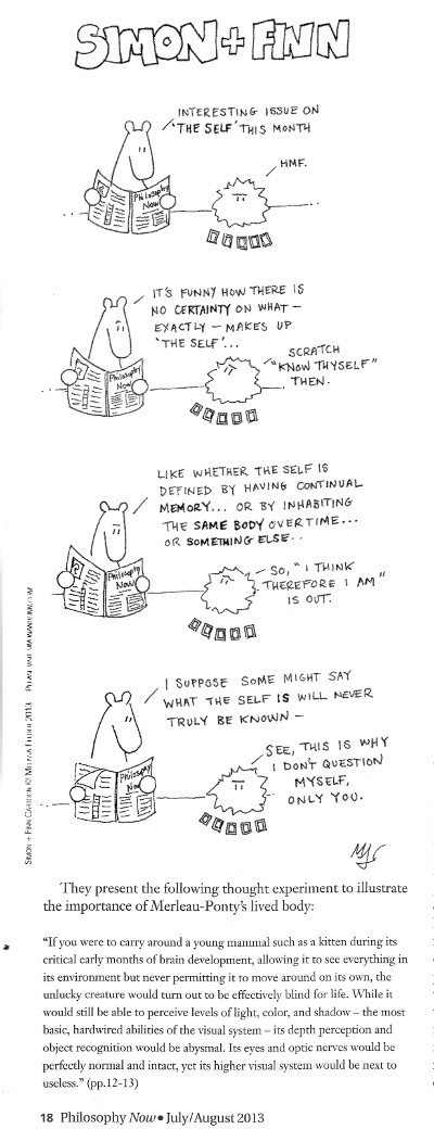 This cartoon was published in the August issue of Philosophy Now. This issue focused on how we define the idea of ‘self’, which was an interesting question to think about.